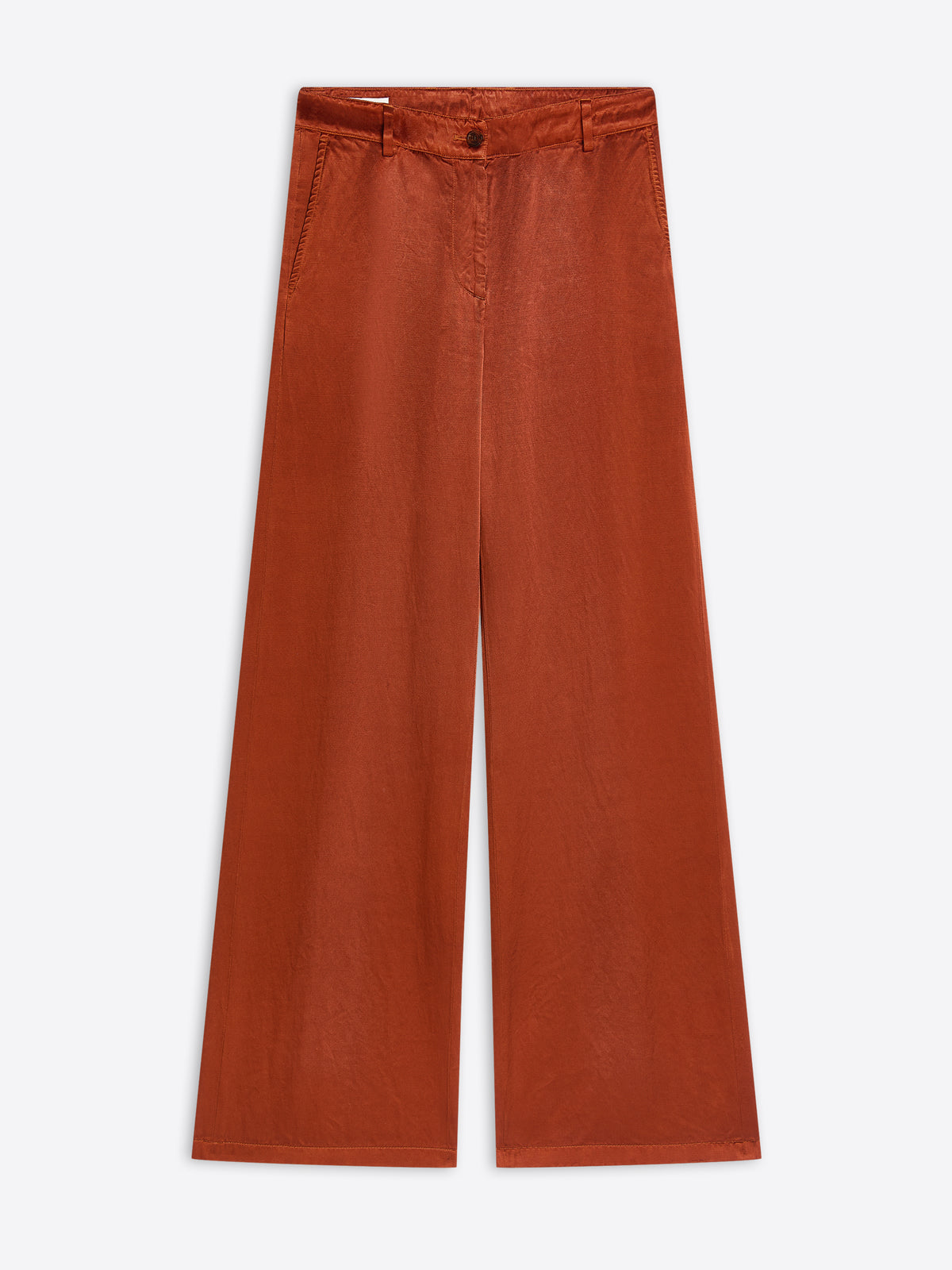 Regular fit. Straight leg. Side slit pockets and back welt pockets. Belt loops. Front zip and hook closure.