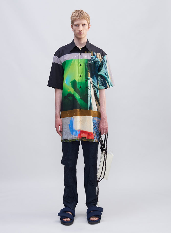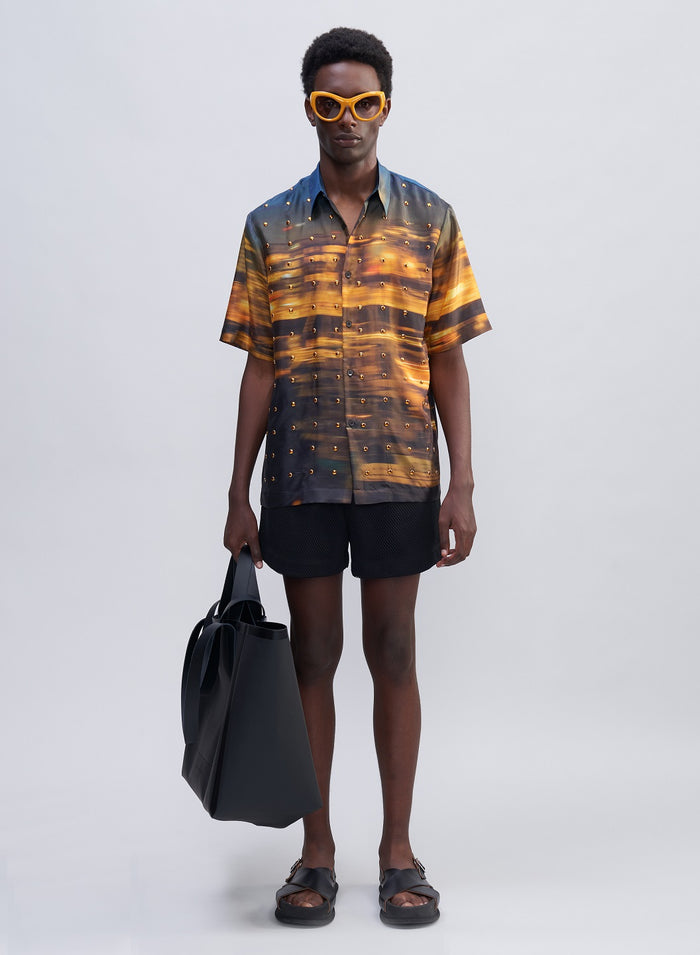To preserve the colours of our printed garments, wash them gently. Most importantly, they shouldn’t be left in the washing machine once the cycle has finished. Immediately take the piece out and let it dry on a hanger to avoid that the colours start bleeding.