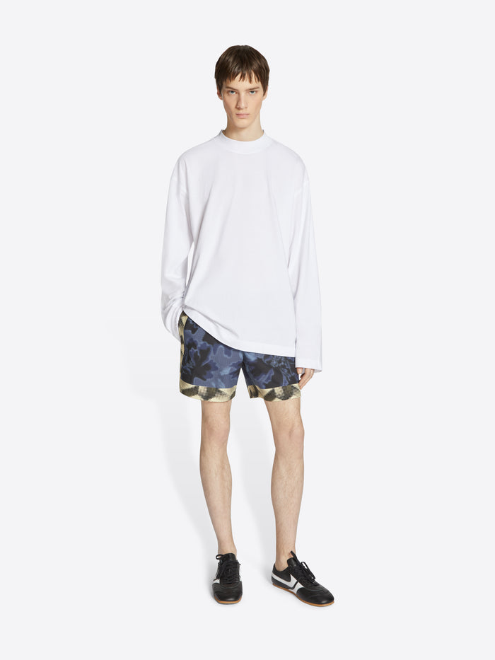 To preserve the colours of our printed garments, wash them gently. Most importantly, they shouldn’t be left in the washing machine once the cycle has finished. Immediately take the piece out and let it dry on a hanger to avoid that the colours start bleeding.