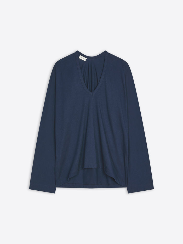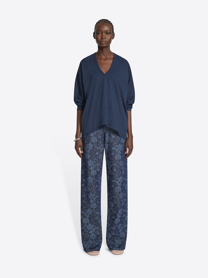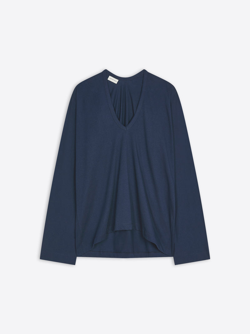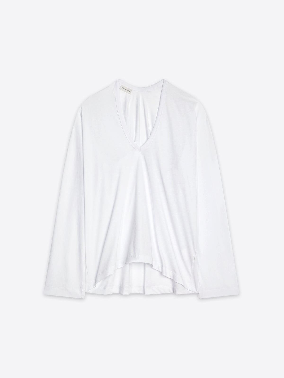 T-shirt oversize à manches longues et col en V profond, en coton léger.