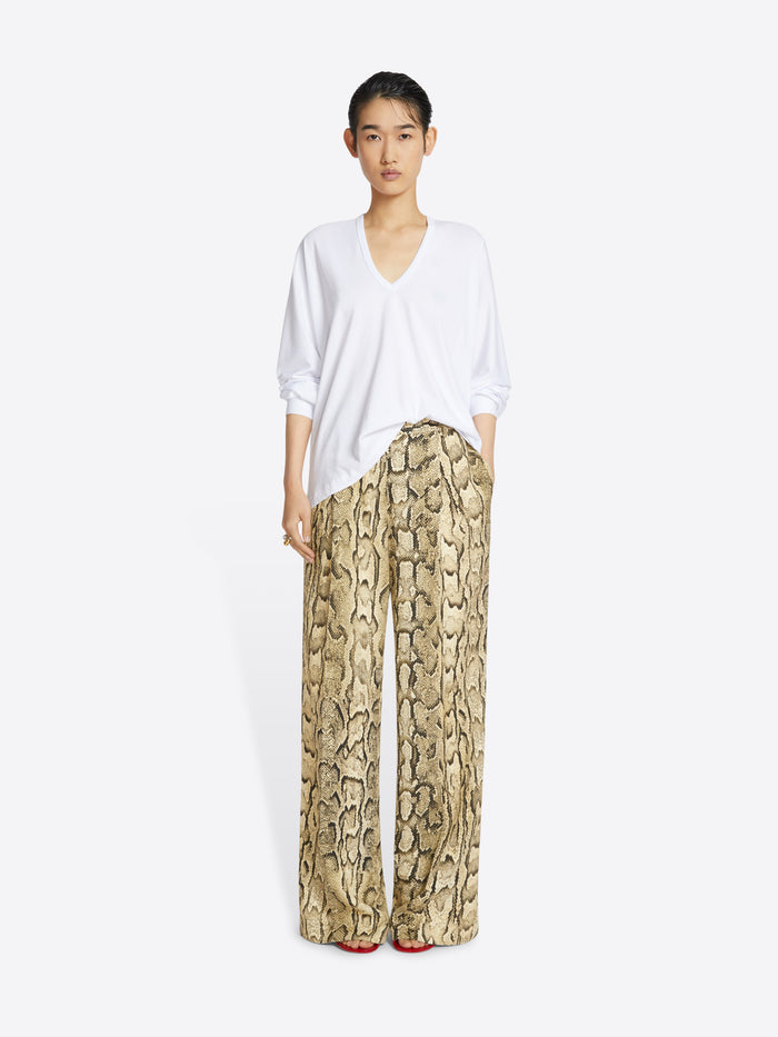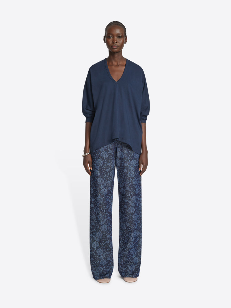 Coupe oversize. Manches longues. Décolleté en V profond.