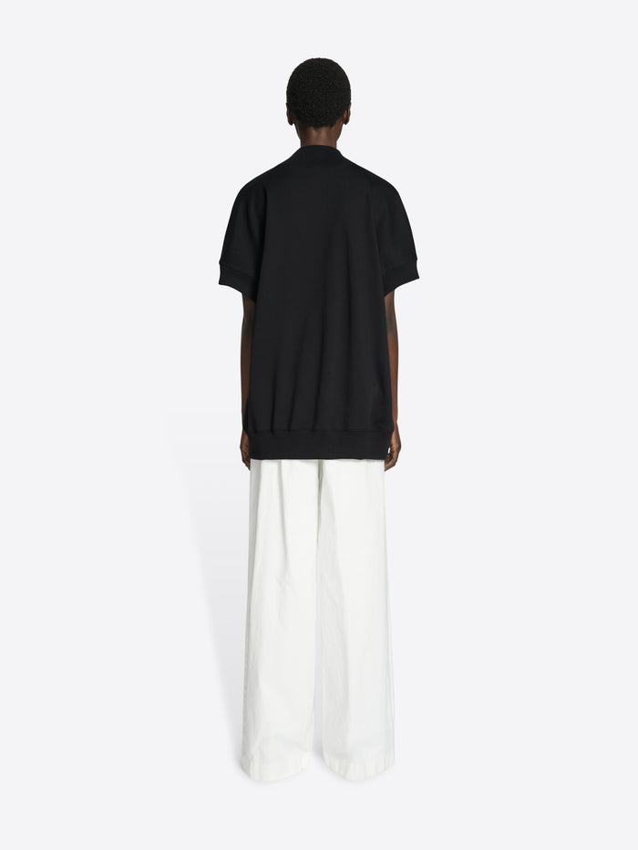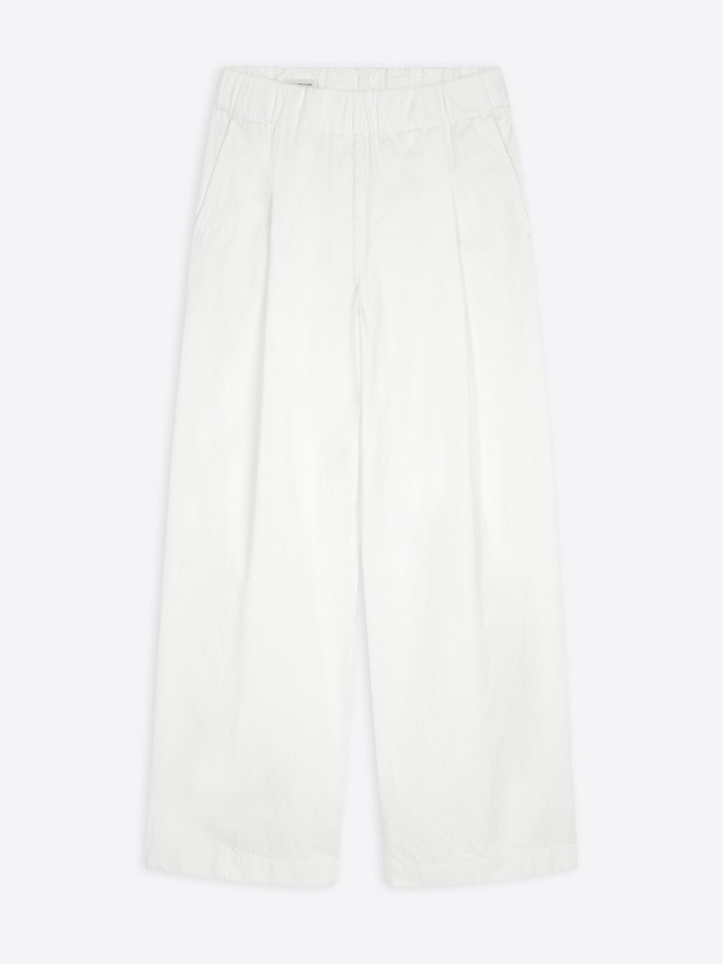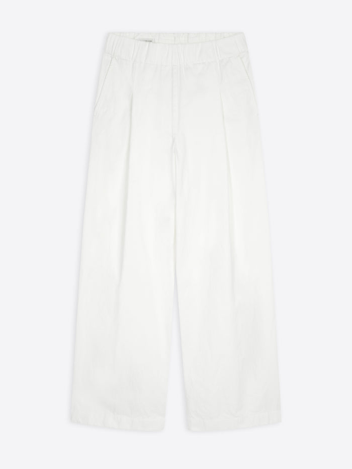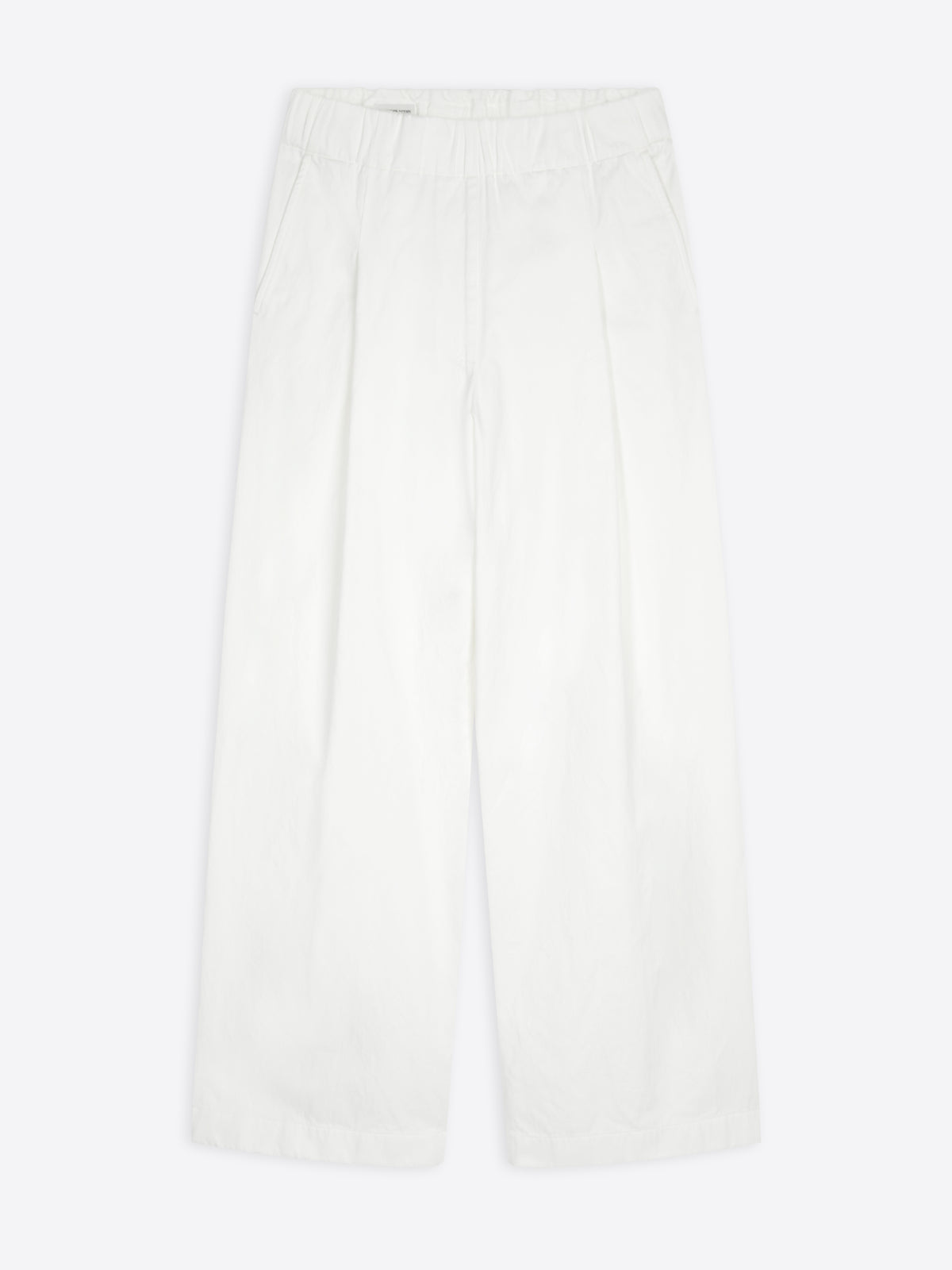 Coupe ample. Taille haute. Large. À plis. Poches arrière plaquées et poches latérales plaquées. Taille à élastique.