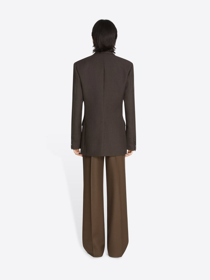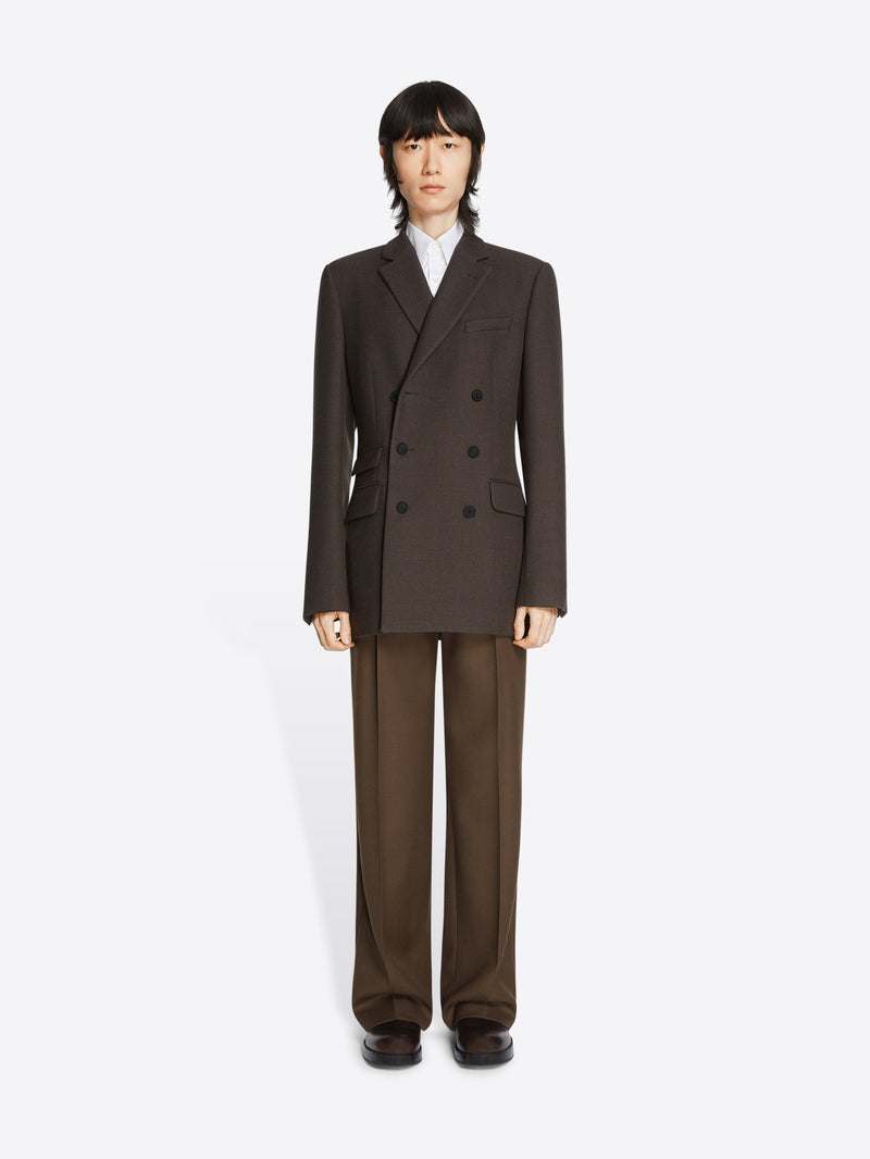 Coupe droite. Pas de revers. Doublé. Double boutonnage. Poches à rabat sur le devant et poche de poitrine passepoilée. Poignets boutonnés. Fente unique. Fermeture à bouton sur le devant.