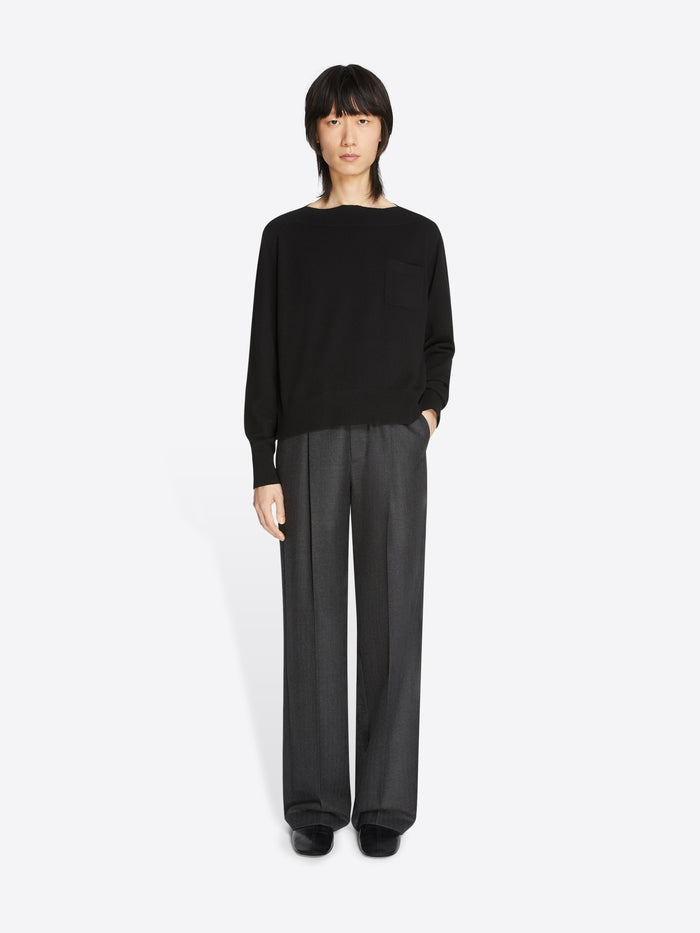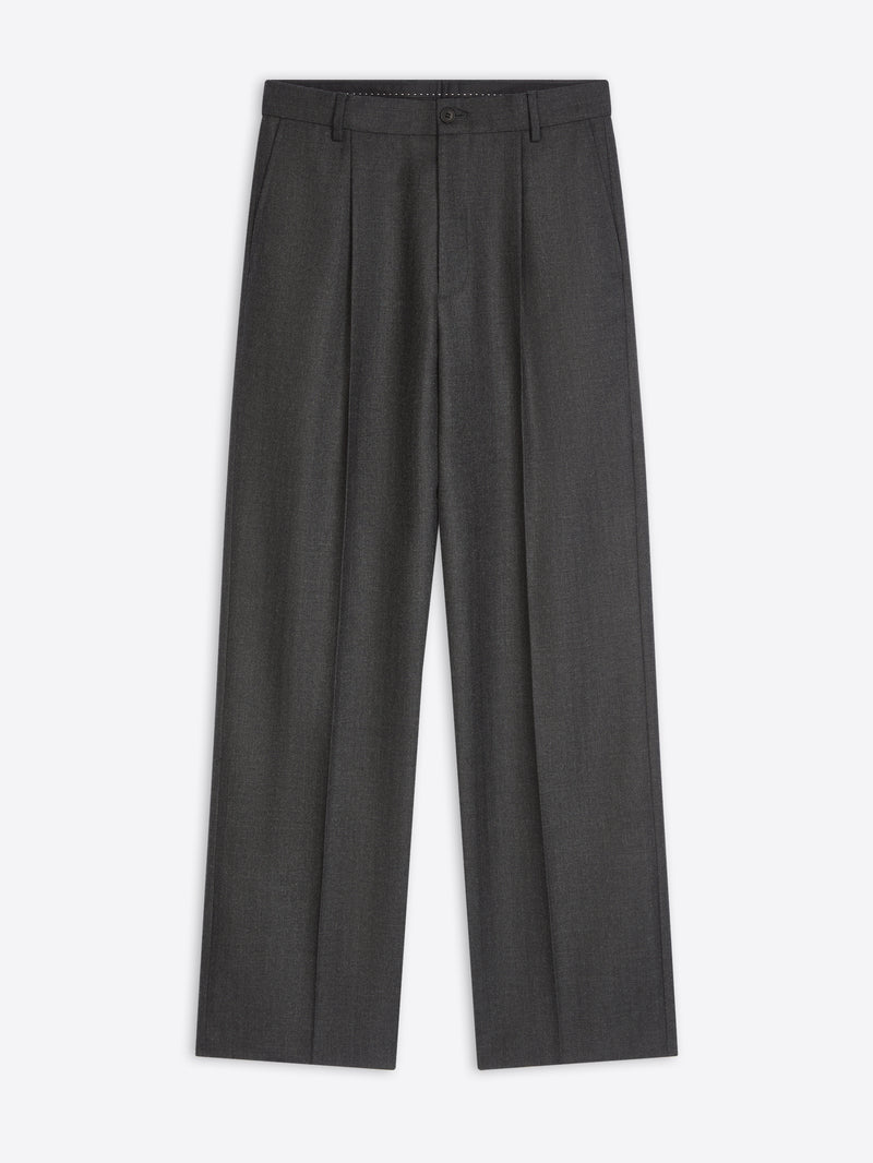 Coupe droite. Taille mi-haute. Jambe droite. Plissé. Poches latérales fendues et poches arrière passepoilées. Passants de ceinture. Fermeture par bouton et zip sur le devant.