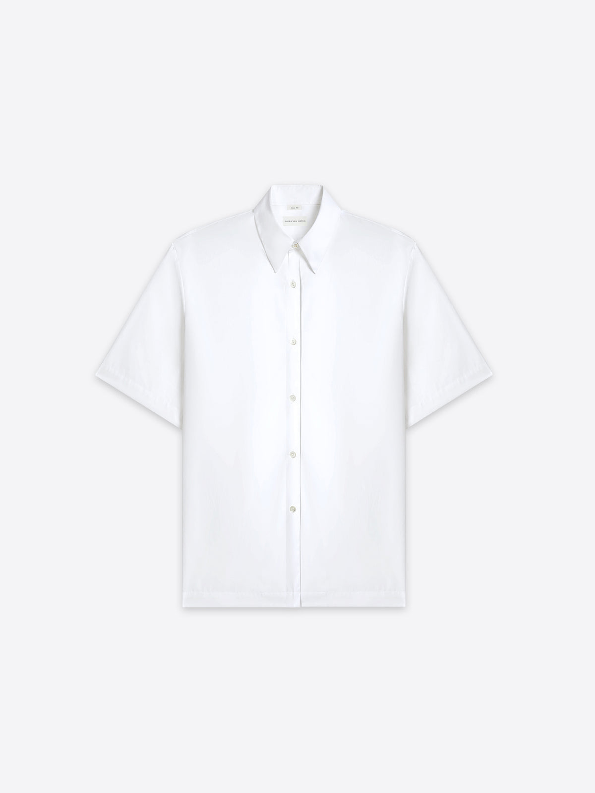 Normale pasvorm. Korte mouwen. Knoopsluiting voor.