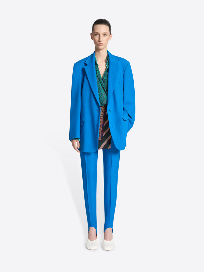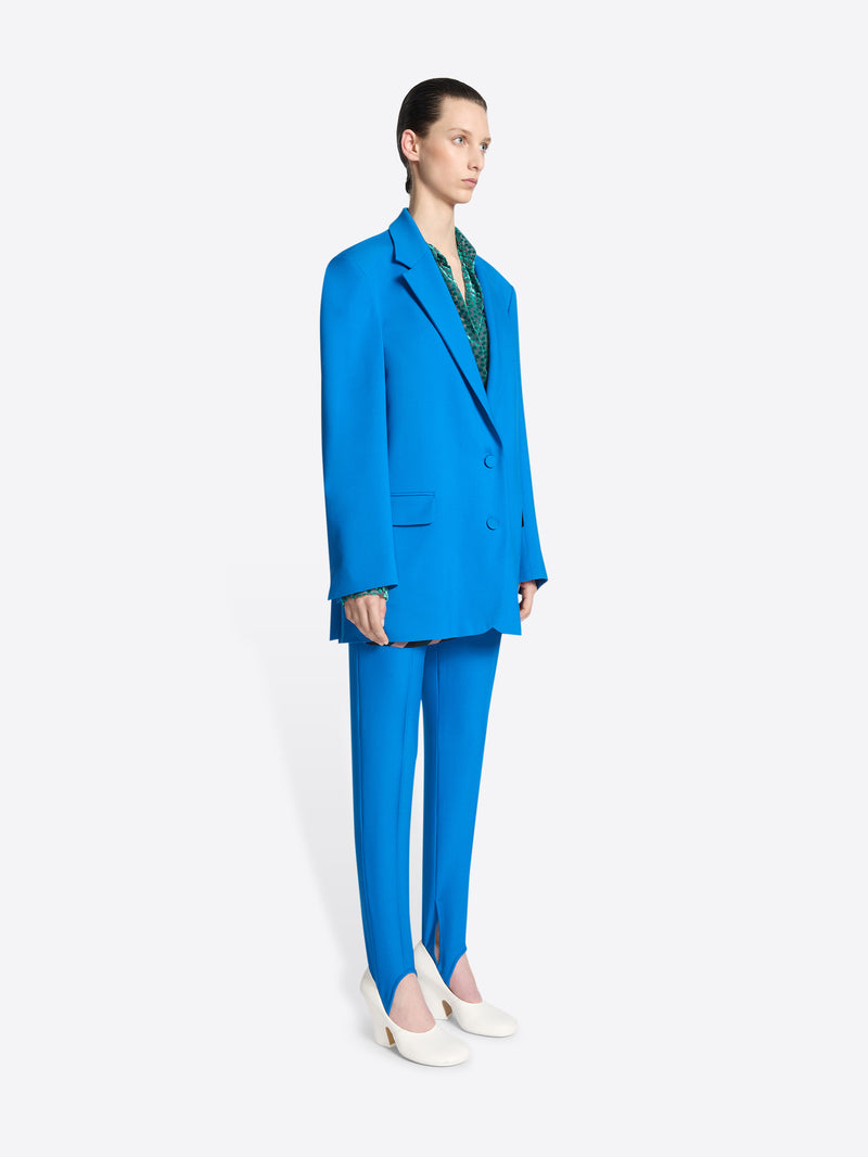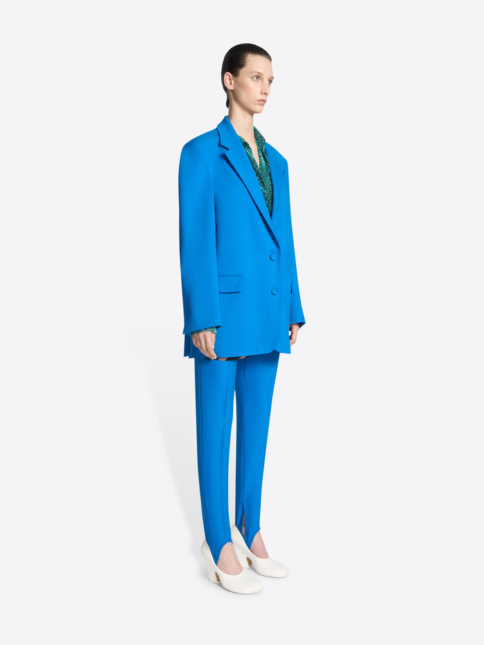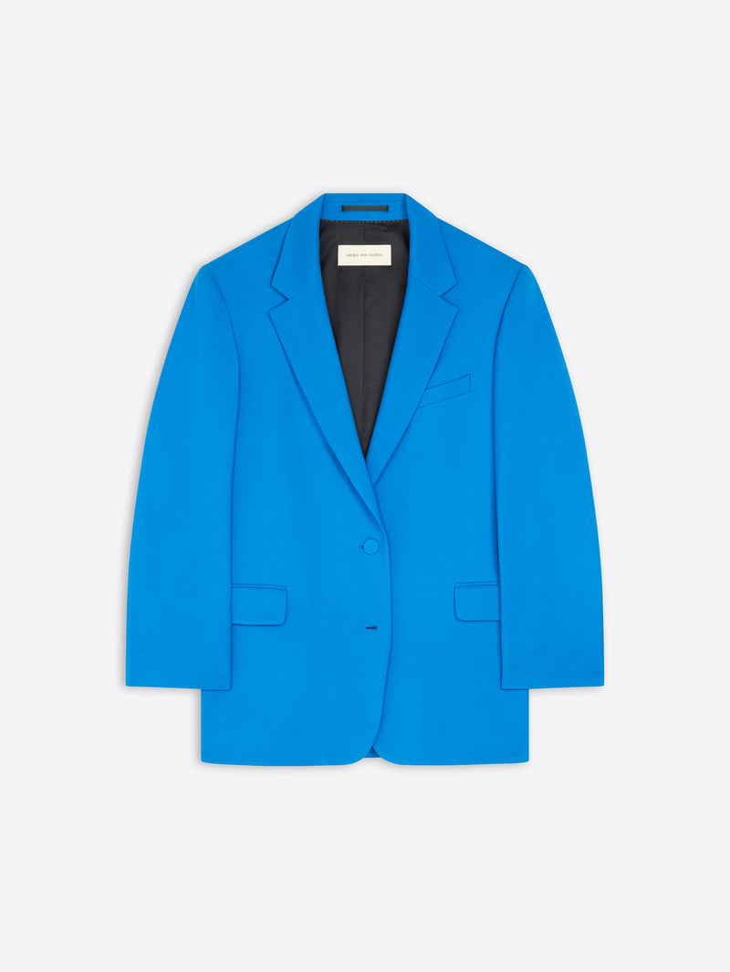 Blue oversized wool blazer on a white background