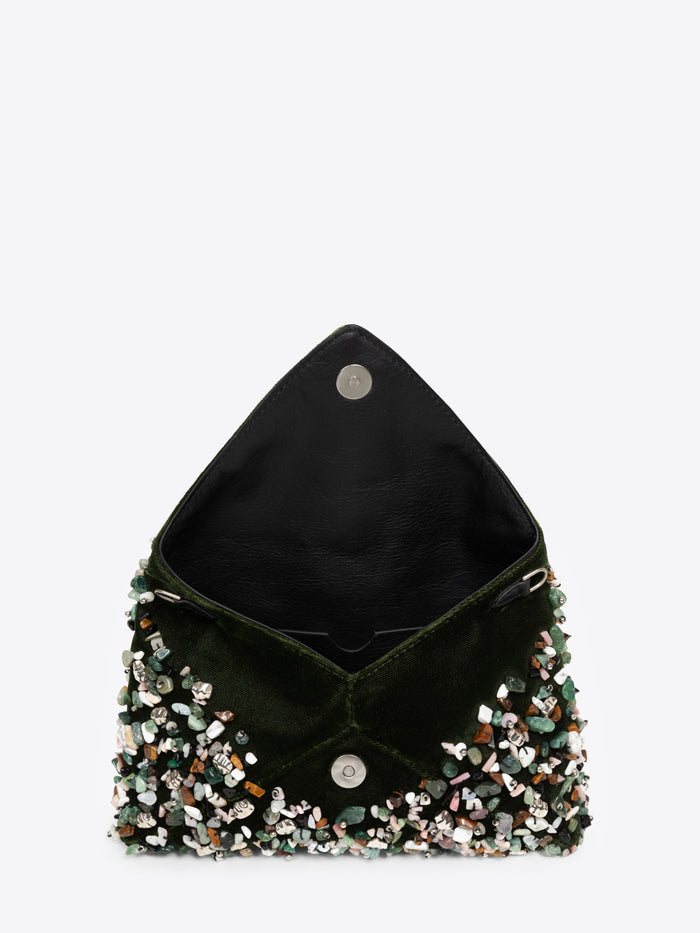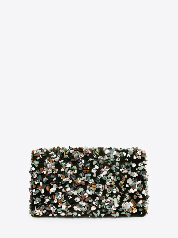 Afneembare schouderriem met ketting. Binnenzak. Magnetische kliksluiting aan de voorkant.