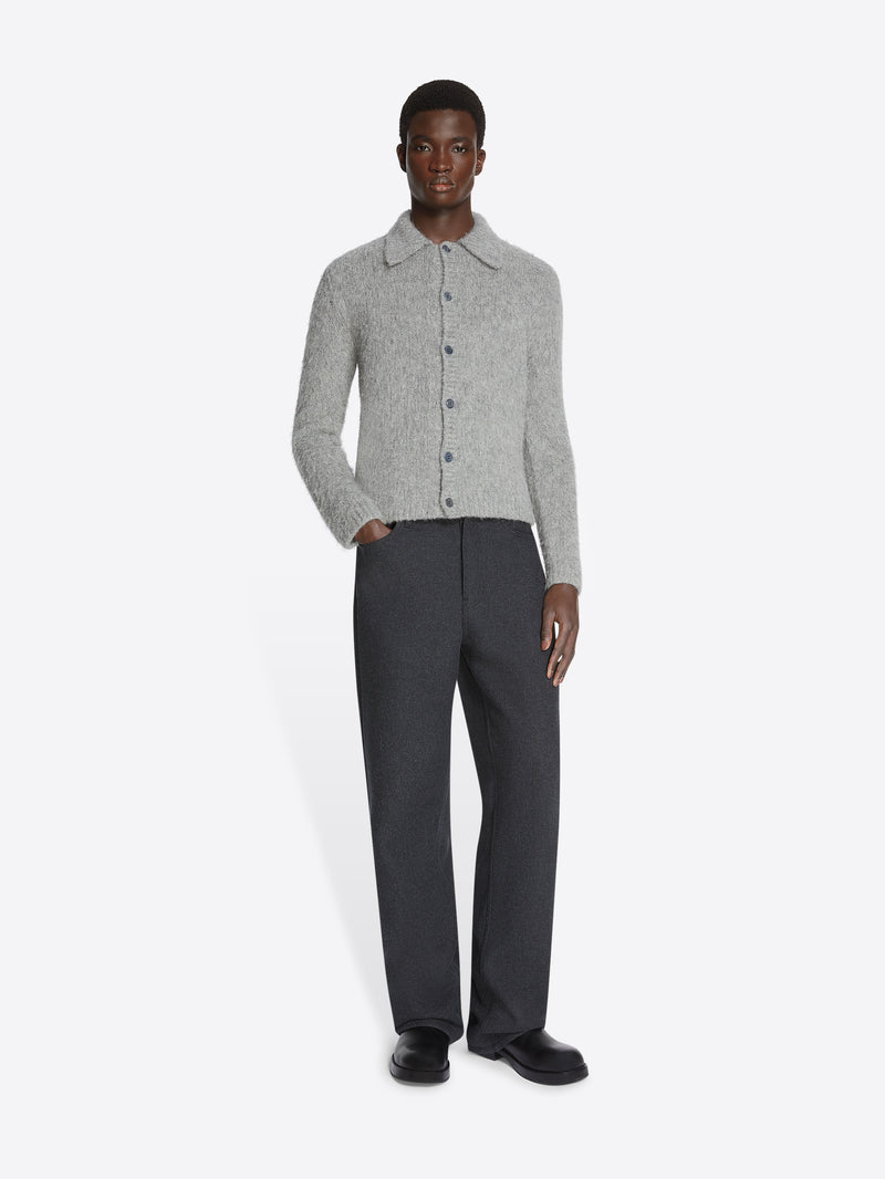Regular fit. Cropped. Front button closure.